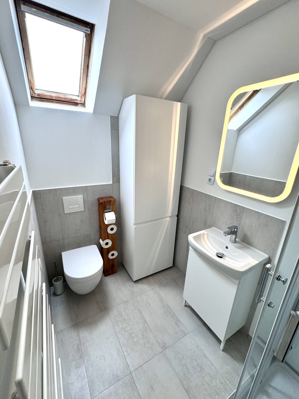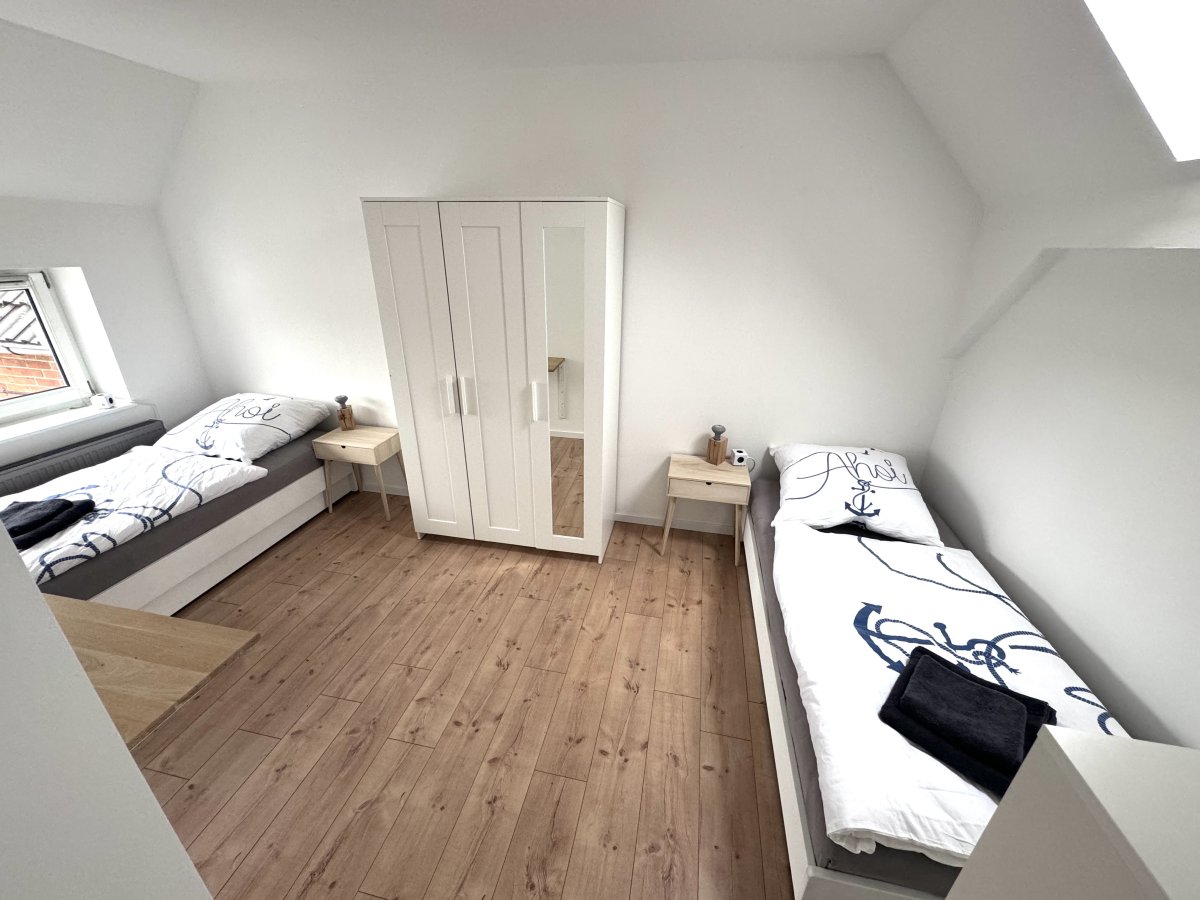Unsere ca. 70qm große Wohnung im 1.OG mit seperatem Eingang bietet Platz für bis zu 4 Personen, verteilt auf ein Schlafzimmer mit Doppelbett ein Wohnzimmer sowie einem weiteren Schlafzimmer mit 2 Einzelbetten. Außerdem ein Duschbad , sowie eine Küche mit Vollausstattung